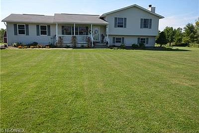 Quiet 5 Acres on a paved country road. Ideal property for gardening and animals includes a 20x24 Barn with loft and water; also a storage shed. Pleasant front porch entry is perfect for seasonal decorating. Three levels of living in addition to a basement for mechanicals, laundry, storage and hobbies. Options for many lifestyles with Master suites on the second floor and lower level. Family size Kitchen with eating counter and large dining area opens to Formal Living Room. Family Room is convenient and cozy with brick hearth fireplace and corner desk/cabinets. Enjoy quick trips to Amish country for shopping and restaurants or inland lakes and parks such as Pymatuming and Punderson. Convenient location to Kent State Geauga campus and the walking/biking trails of Geauga and Ashtabula counties. Or how about a quiet walk on your own country road or 5 acre yard? You will not be bored!