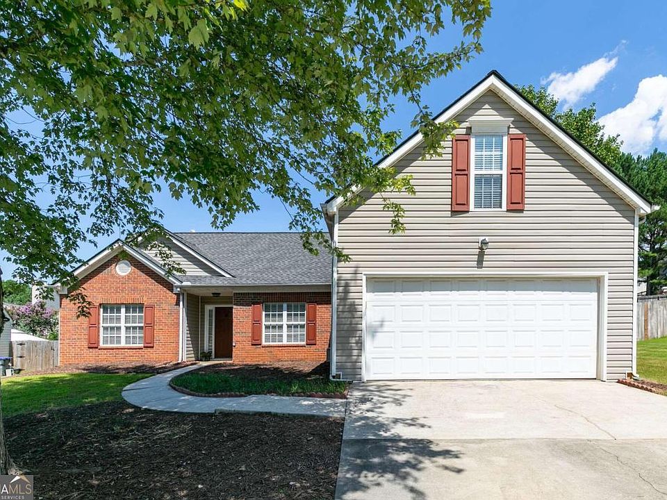 Welcome to this meticulously maintained 3 bedroom, 2 bath home that offers a perfect blend of style, comfort, and functionality. As you step inside, you'll be greeted by cathedral ceilings that enhance the open and airy feel of the living space. The kitchen is a chef's dream, featuring sleek black stainless steel appliances, including a gas stove and plenty counter space. It seamlessly opens up to the living area, where a double-sided fireplace creates a warm and inviting atmosphere along with the perfect breakfast nook. The primary suite is a true retreat with trey ceilings, a large bathroom with a separate tub and shower, a double vanity. The other two bedrooms are thoughtfully situated on the opposite side of the home, providing privacy and convenience with a shared full bathroom. Additionally, you'll find custom Elfa closet systems in most of the closets for maximum storage. Above the large 2-car garage, a finished bonus room, is perfect for a home office, playroom, or guest space. Step outside to your private, fenced backyard, where a large deck provides the ideal setting for entertaining. The roof is approximately 8 years old. Home is situated in a cul-de-sac and the neighborhood is conveniently located near thriving downtown Sugar Hill with all the great new restaurants and entertainment. Enjoy the wonderful swim and tennis community of Stephens Mill!