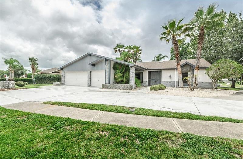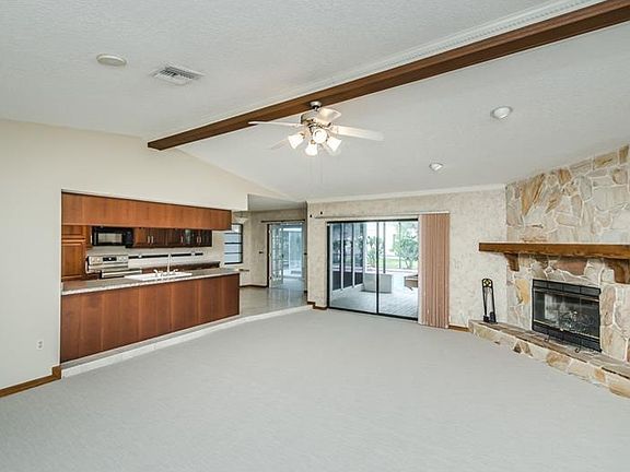 Fantastic River Crossing pool home. Very large 3 bedroom, 2 bath with 3 car garage situated on .29 acre corner lot with circular drive. This home is in move in condition and features a bright and open floor plan with plenty of space for living and entertaining. Lots of upgrades and updates including remodeled kitchen with Kraft Maid wood cabinets, granite countertops and new appliances; repainted inside and out and new skylight 2015. Beautiful marble floors in foyer, dining room and kitchen and brand new carpet in living room and bedrooms. Sunken living room with beamed cathedral ceiling and wood burning fireplace; formal dining room plus eat-in kitchen and snack bar; huge bonus room with dry bar that could be used as family room, office, additional bedroom area or just a great room for entertaining; Split bedrooms and all good size; inside laundry room; Covered lanai with outdoor kitchen and pool table included! The large salt water pool with spillover spa was just resurfaced July 2017. South Pasco location near shopping and services and minutes from Starkey Park. Low HOA fees for $155 per year.