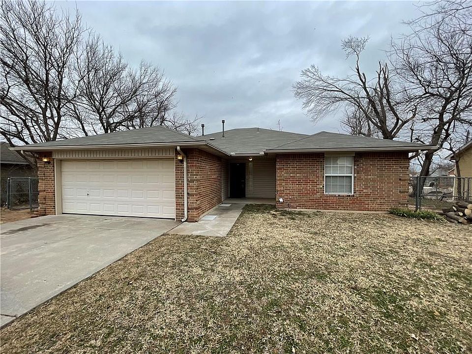 Welcome to Crosby Richland Hill addition. This home features 3 BD 2 Full BA with recessed bar setting in living area. Split floor plan has a very open feel with very good size Master Bedroom at the rear of the home. New roof replaced last year! Also, carpet was replaced within last couple of years. Large covered back patio. Inside utility. There is an outdoor brick build addition which was built as a chapel. It is small inside but can serve as a separate office or mancave/she shed . Very close commute to Tinker AFB and I-40 access. Nearby growing shopping center.