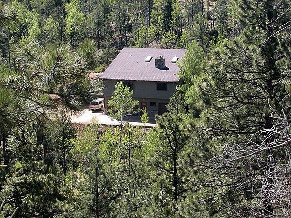 Privacy, security, serenity! Civilized mountain living. Paved roads lead most of the way to this comfortable home with its own stream & pond. Unobstructed mountain views & some city lights. Private full baths in three of the bedrooms. Kitchen has been extensively updated w/ Corean counters, stainless appliances & new wood floors! Cozy woodstove in living room w/ wall of windows to soak in the expansive views. New vinyl windows! Woodstove & shop area in garage, plus plenty of room for cars & toys.