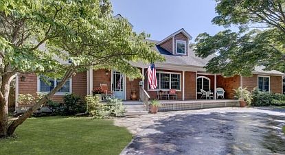 North Fork~ Mattituck. Breakwater Beach Community 5 BR/ 3.5 Bath designer inspired chic Traditional home exudes great taste & style, the mahogany planked front veranda welcomes you every day. Gorgeous wood flooring throughout the residence, upscale craftsman details, all completely updated within the past 1-8 years. Main floor master suite, separate private wing at opposite side used as Studio Apartment Ensuite for Mom, Nanny, Guests or Professional Home Office! Wing has a private side entrance, and it's own charming covered porch to sit outside in all weather. Three additional nicely appointed bedrooms on second level...one has a large unfinished bonus room. Beautiful granite great room/ kitchen opens to the oversized trek sun deck for entertaining grandly. Spacious 2700 SF, just about new everything. Glorious landscaping, lovely mature specimen flowers to enjoy all season long. Room for pool but a wonderful beach is just down the road for sunning on the sound, fishing on the jetty, or boating from one of many local marinas.