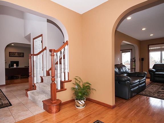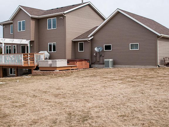 Country located 5 bedroom, 4 bath Two Story home on two plus acres of privacy in Colonial Oaks, a quiet & peaceful neighborhood of acreage homes. Summer evening relax on the front covered porch or grill out on the large entertainment sized deck. Large foyer opens to living and family rooms, formal dining or main level study. Beautiful custom kitchen with built in oven and ample cabinetry., Directions: Hwy 14 East, turn Right on 60th Ave SE, Right on Colonial Lane.