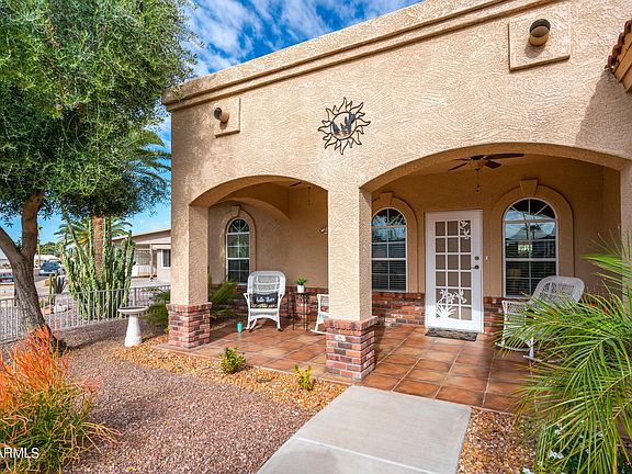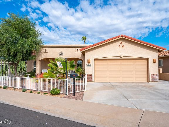 Well-built and well-cared for home in popular Apache Wells, a 55+ golf community in North East Mesa. Hard to find 4 bedroom home which can serve as additional office/den areas. Chef's kitchen w/gas range, center island, and space for larger dining area if needed. Master suite is privately separated from guest areas. Vaulted living room, double garage w/storage. Back patio, and inviting front patio, all fenced in for privacy and/or pets. Just move in and enjoy! Great value in a high-demand community on quiet street. Low HOA, no land lease! Many activities and amenities. HURRY, This one will fly!