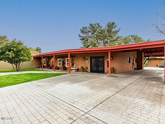 Priced $5k under appraisal! This exceptionally upgraded enclosed property provides carport parking w/an extended driveway, green lawn, & a relaxing front porch. Enter into a world of beauty w/the harmonious open layout, highlights include wood like tile flooring, chic light fixtures, vaulted ceilings, great room, living room & office. Chef's dream kitchen boasts a plethora of cabinets & stainless steel Miele appliances, granite counters, tile backsplash, & a waterfall island. Primary bedroom has plush carpet, a walk-in closet, & an ensuite w/ dual sinks. HUGE backyard w/ a covered patio, storage shed, built-in BBQ, garden fountain. Walk outside the gate & you're a mile from the loop, neighbors walking & biking, close to shopping & restaurants &5mi to TMC & Costco