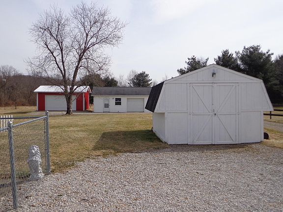A well taken care of ranch home with 4 additional buildings. This home has a full basement that could be finished to your touch, woodburning stove and shower already in place. Nice Florida room with new carpet off kitchen. Furnace, heat pump, a/c all new. The 24 x 32 additional building is insulated with cement floors, 220 electric, propane heat, and work bench, could be transformed into mother in law suite. The 24 x 24 building is insulated, has electric, cement floors, propane furnace, & work bench. There are 2 sheds, the 12 x 16 shed has electric. Beautiful lot with trees and a fenced in area for you dog. Call this home!