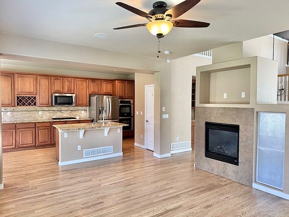 Must see this home!! Big 4,678 sq ft beautiful, spacious home with open concept kitchen & family room, 2 patios, 3 gas fireplaces for cozy nights, a giant family room, an office/sitting room, a mud room, and a butlers pantry. The home is on a quiet cul-de-sac in desirable Wolf Ranch and has a fenced area. Near the main community park (summer concerts) with a waterfall, and a reflection pond. Nearby is Wolf Lake for walking, fishing, and kayaking. Other parks close by, walking and riding trails, and sidewalks throughout. Great access to Powers and Research for a quick commute to I-25, all military bases, and anywhere in the city. Top-ranked district 20 schools for the kids. 3-car garage, plenty of storage room, automatic sprinkler system for easy yard care, central air conditioning, Hardwood floors throughout the main level. Fireplace in the master with 5 piece master, double shower, and walk-in master closet. Kitchen has granite countertops, island, double oven, and a butlers pantry. The large downstairs family room is good for movies, game room, entertaining. Plenty of street parking. Community pool (for a fee) and activity center available. Dogs will be considered. Property available 8/1/2025. Please call for details, questions, and to schedule a tour. This is a You'll love this must-see home on your visit today. 12-month lease