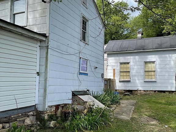 Being sold "AS IS". Garage is in good shape with new roof and block walls! 3 car garage with office in the front. Could easily add a 4th bay in place of the office. Lot runs along the driveway on right to post in back across interior of stone wall. Then from corner of fence inside stone wall to telephone pole in front yard (runs between the fence gate). Home needs a lot of work.