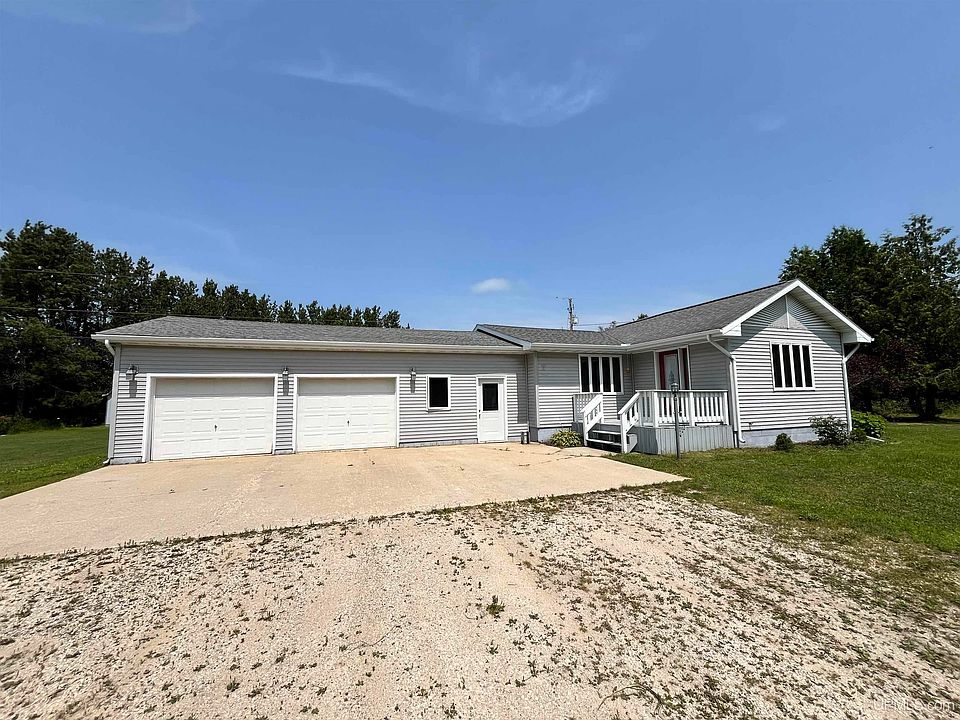 Welcome to your serene country retreat! This charming ranch-style home, nestled on a sprawling 1-acre lot, offers the perfect blend of comfort and tranquility. With a spacious open floor plan, this inviting residence features 2 cozy bedrooms and a well-appointed bath complete with a relaxing soaking tub and shower. The thoughtful design includes a versatile bonus sitting room ideal for a home office or additional living space. Enjoy year-round comfort with the new central air conditioning and a modern furnace that's just 2 years old. Step outside to your private new patio, perfect for entertaining or unwinding, and take advantage of the expansive yard that offers endless possibilities. The property also boasts an attached heated 2-car garage and a substantial 40x54 pole barn for all your storage needs. Located on a paved county road, this home combines the convenience of modern amenities with the peace of country living. Don’t miss this opportunity to make this delightful property your own!