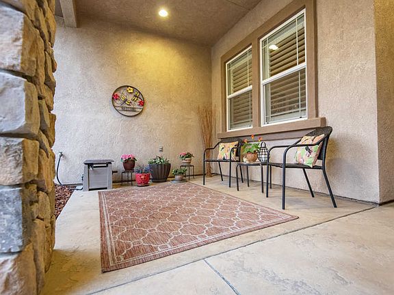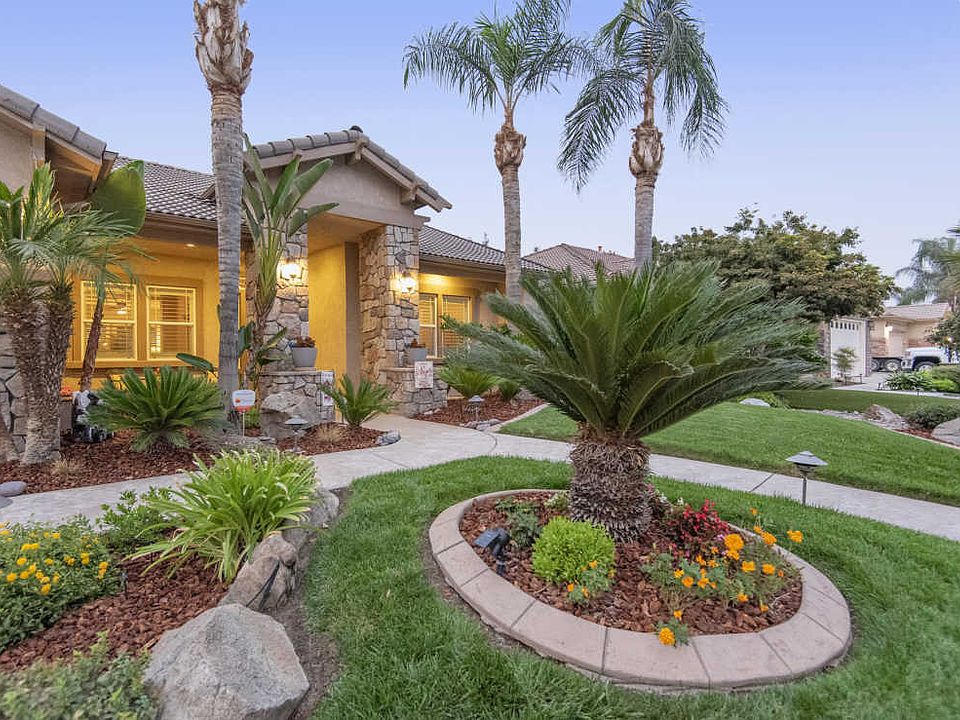 STUNNING, move-in ready Amber Crossing home! It all begins with the colorful, custom landscape and curb appeal. Formal entry and formal dining area. Fabulous open floor-plan with chef's dream kitchen with island, granite countertops, and gas cooktop. Charming breakfast nook. Kitchen opens to great room featuring custom built-in and custom fireplace and mantel. Surround sound, high ceilings, plantation shutters, and crown molding throughout. Luxurious master suite with door to back patio, large bathroom with his & hers vanities, and huge walk-in closet. Desirable split floorpan. Additional bedrooms are spacious, and one is being used as office. Powder bathroom for your guests. Backyard is an entertainers dream! Patio has tile flooring. Professional landscape with exotic palms and mature trees for privacy. Ambient waterfall and pond with beautiful stonework. Concrete around the perimeter of the home. Conveniently located near schools and shopping, this is a ''must see'' opportunity!