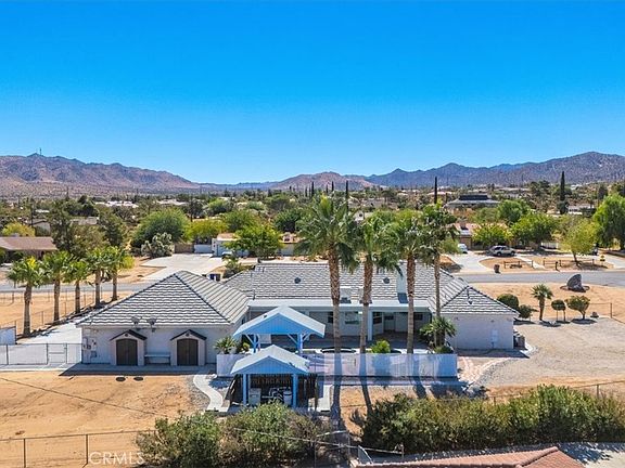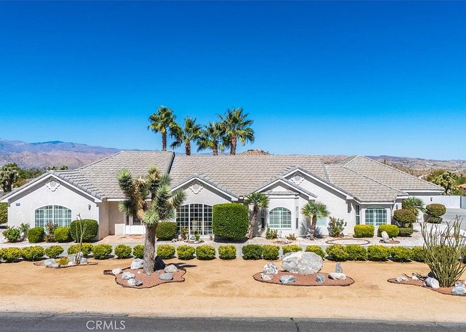 Welcome to this exceptional 4-bedroom, 3.5-bathroom home with a paid off solar system located in the prestigious Sky Harbor area of Yucca Valley. Spanning over 3,169 square feet of luxurious living space and set on just over an acre of beautifully landscaped land, this property defines elegance, comfort, and high-end desert living. Every detail of this home has been meticulously crafted to create a sophisticated, yet welcoming atmosphere. From the grand indoor spaces to the resort-style outdoor amenities, this estate offers a lifestyle of unparalleled quality. One of the standout features of this estate is the outdoor living area. The backyard is a resort-style oasis, featuring a stunning Pebble Tec pool and spa with a waterfall . This outdoor area is designed to offer relaxation and enjoyment and a feel as though you’ve stepped into your own private resort. Next to the pool, you’ll find a deluxe outdoor barbecue area, complete with built-in counters with a high-end grill, and seating. Property also features an impressive four-car garage, spanning 1,369 square feet. This garage is designed with custom-built cabinets throughout, providing ample storage space for tools, equipment, or hobbies. With two 8-foot doors, epoxy-coated floors, and 23 four-foot lights, the garage is as functional as it is stylish. It also includes 500 square feet of attic storage, accessible via a built-in ladder, making it easy to store seasonal items or larger belongings. For added convenience, the garage even includes a half bathroom. At the center of the home is the chef’s kitchen, designed to impress even the most discerning cooks. The kitchen features granite countertops and ample cabinetry for storage. The kitchen flows easily into the family room and living room, making it the hub of the home. Moving on to the master suite, this spacious retreat offers a true sanctuary for relaxation. Spanning 366 square feet, high ceilings and plantation shutters The en-suite bathroom is a spa-like haven, complete with a soaking tub, and a walk-in shower, The walk-in closet is equally impressive, offering plenty of room for organization and storage. In conclusion, this Sky Harbor estate offers a rare opportunity to experience the very best of desert living. Don’t miss out on this once-in-a-lifetime opportunity to own a piece of paradise in Yucca Valley. Schedule your tour today and discover why this property is one of the most sought-after in the area.