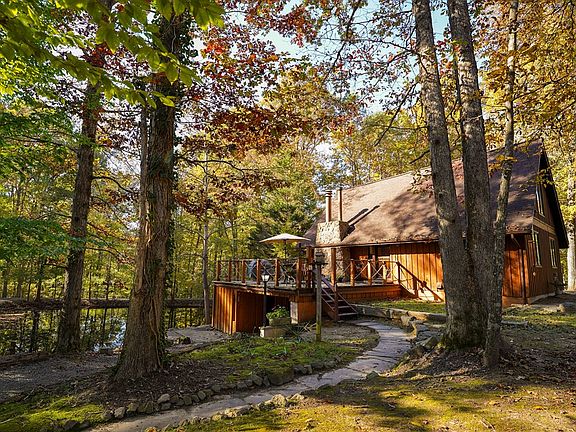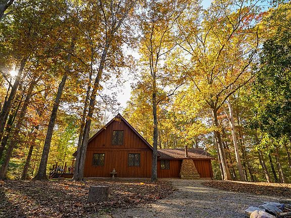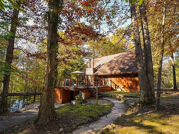 Main floor has original 7/8" Palmersville High School Gym flooring; termite contract; Hughes Net internet; Pella windows; both fireplaces are functional; basement w/ concrete floor; walk-out den to pond; geothermal HVAC system; also some baseboard heaters, if needed; single garage w/ storage or potting shed; 15' deep pond stocked w/ bass, bluegill, brim, grass carp, John Boat w/ trolling motor stays; gravel path around pond; walking trail around property; fire pit; 1 bedroom & 1 bathroom on main, upper & basement levels; detached 1 bedroom, 1 bath apartment or in-law quarters w/ living room, small kitchen, gas heat & window a/c, on demand water heater, has 3 levels.
