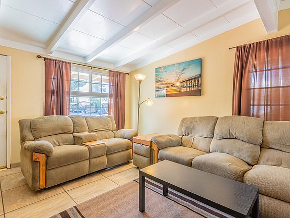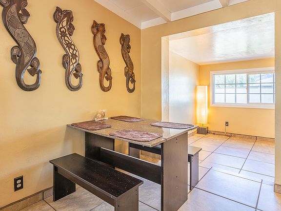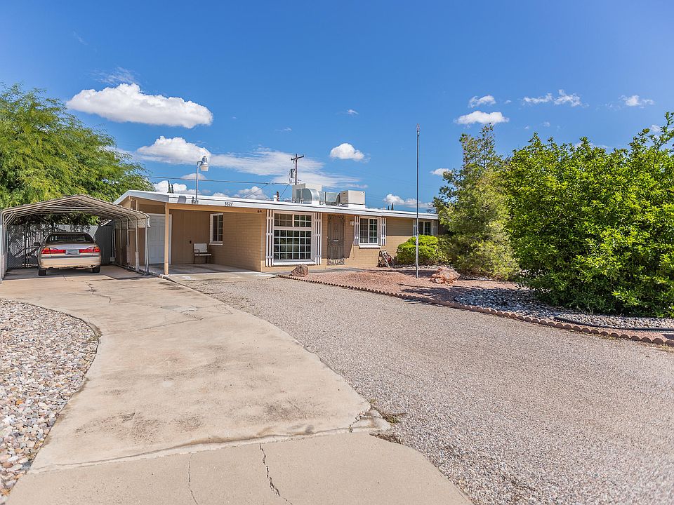 Recently updated and move-in ready, this 3BR charmer is one to consider whether you're buying your first home or downsizing to your last. Cozy living room flows into the dining area. Your kitchen boasts new cabinets, counters, miniature glass tile backsplash, microwave and sink. Custom ceiling fans, plumbing fixtures and 24'' tile create a ''new home'' feel. Your bath has been modernized and is centrally positioned amongst the bedrooms. Roomy tiled AZ Room leads to a surprisingly large back yard adorned with landscape rock, and even an patch of artificial turf for your pets. Additional storage shed is included as well. Two carports provide covered parking. Did I mention NO HOA? Come see this adorable home & prepare to be smitten!