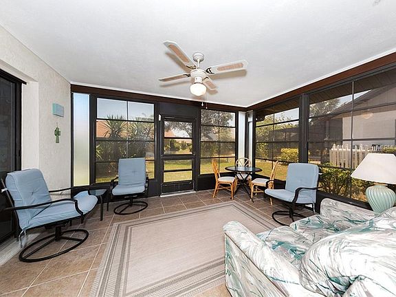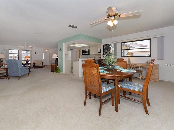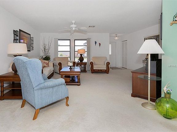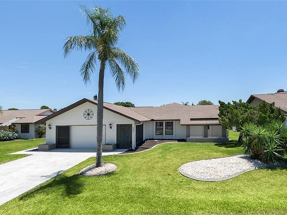 CLICK ON TOUR 1 TO SEE THIS HOME IN 3D! This adorable two bedroom, two bath home in Gulf View Estates is well maintained, neutral in décor, and move in ready. The screened front porch is a welcoming place to relax and concrete curbed garden beds await your favorite tropical plants and flowers. As you enter the home, you see the open and spacious living and dining room area, perfect for entertaining or relaxing with friends and family. The kitchen is central and open to the home and offers a large breakfast bar to the dining area as well as a beautiful ceramic tile backsplash. Sliding glass doors from the dining room and master bedroom provide access to the lanai which features a ceramic tile floor, versatile vinyl windows, and new screens. The master bedroom features an en-suite bath with brand new vanity & light fixtures, large walk-in closet, and a walk-in shower. The split floorplan affords privacy for family or guests with a pocket door to the guest bedroom and bath, creating a guest suite. A large utility room has extra closets and storage and provides access to the spacious 2-car garage. This home features a newer A/C and water heater, re-piped water lines, recently painted exterior, and carpets just cleaned. Gulf View Estates, a deed restricted community with low HOA fees is within easy bicycling distance to Manasota Beach Public Beach and Boat Ramp. This home is ready and waiting for you to start enjoying the Florida lifestyle!