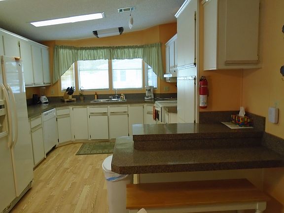 HIGHLY MOTIVATED SELLER ON THIS VERY SPACIOUS HOME!!! 1600+ SQ FT ALMOST FULLY FURNISHED HOME KITCHEN has breakfast bar, tiled backsplash, an abundance of white cabinetry, lots of counter space, and open to living and dining areas. MASTER BEDROOM is a very large living space with and extra large closet (12x4) and en suite with raised toilet & walk-in shower. GUEST BEDROOM is large enough for a queen bedroom set. 2ND BATH also has raised toilet with a tub/shower combo. LAUNDRY ROOM is separate room and inside the home with built-in shelving and cabinets. FLORIDA ROOM is fully insulated and A/C controlled with fan, vertical blinds and a full-size sleeper for extra guests. SHED/UTILITY ROOM is 127 sq ft with built-in shelving, work station, and electrical outlets. SCREENED PATIO IS A MUST IN FLORIDA and this home has an 11x13 patio space with a retractable screen door. ROOF IS ONLY 5 YEARS OLD! ALL FURNITURE IN PICTURES ARE STAYING WITH THE HOME. MAKE AN OFFER, THERE IS A LOT OF ROOM IN THIS HOME! FOREST LAKE ESTATES IS A 55+ LAND LEASE COMMUNITY FOREST LAKE ESTATES FEATURES TWO HEATED POOLS, HEATED SPA, SPACIOUS SUN DECK, TENNIS COURTS, SHUFFLEBOARD COURTS, A BASKETBALL COURT, HORSESHOE PITS, 18 HOLES OF PUTT-PUTT GOLF, FISHING LAKE, & DOCKS. THE CLUBHOUSE HAS A DANCE FLOOR, YOGA, & EVENTS.