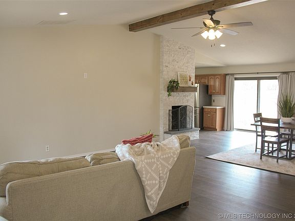 Cute Ranch style home in quiet and quaint Park Plaza Ext! Vaulted ceilings, new wood veneer flooring, floor to ceiling fireplace front, large back yard, great lighting, primary bedroom that features a private bath and larger walk-in closet. Very close to schools, St Francis Hospital, and restaurants. Conveniently located!!!