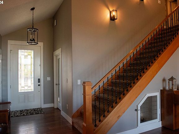 This nearly single-level, 4-bedroom, 2.5-bathroom home offers 2,400 sq. ft. of expertly crafted living space in Gresham-Barlow School District. Built with thoughtful accessibility in mind, the main floor features extra-wide doors, 9-ft ceilings, and a vaulted great room in the sought-after Mascord plan. The main level also includes the spacious primary suite with vaulted ceilings, a luxurious soaking tub, and a walk-in closet, plus a second bedroom or office, a full bath, and a laundry room for added convenience.With 650 sq. ft. of hand-scraped maple hardwood floors, craftsman trim, and a slate fireplace inspired by Street of Dreams, this home radiates both style and warmth. The granite slab kitchen boasts stainless steel appliances and designer tile, offering a perfect space to entertain. You’ll discover hidden treasures throughout, including a charming built-in dog kennel under the stairs and a secret playroom for the kids.Outside, enjoy a beautifully landscaped patio with space for a firepit and a relaxing hot tub. Eco-friendly features like energy-efficient solar panels and dual-zone heating and cooling make this home comfortable year-round. With an oversized front door and garage door, plus an extended bay garage for extra storage or workshop space, this home has it all.Blending style, comfort, and sustainable living, this exceptional property won’t be available for long—don’t miss your chance to make it yours!