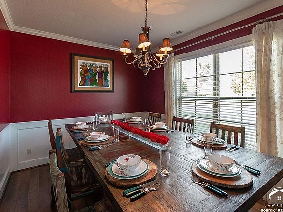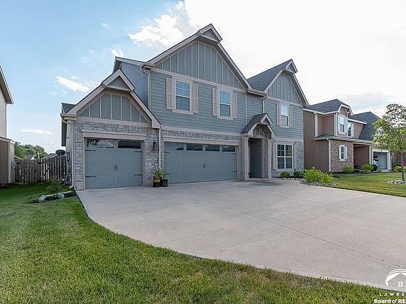 This is a wonderful opportunity to purchase a beautiful home in West Lawrence. It is a 4 bedroom 3.5 bathroom with the master suite on the main floor. All other bedrooms are on the second floor with one of them having another on suite bathroom. There are two laundry rooms, one on each level for your convenience. The yard has been professionally landscaped. This home features a 3 car garage with a concrete shelter room in the garage