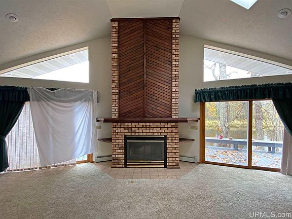 Beautiful piece of property on the Ford River! You will enjoy peace and tranquility here all year long. This cozy home has two bedrooms, a full bath and laundry room with sink. The open kitchen/dining/living room has vaulted ceilings, a wood burning fireplace, and tons of windows to take in the beautiful view. The kitchen features custom cabinetry, lots of storage, island with a breakfast bar, and skylights. Two sets of sliding doors take you to the large deck. This is an ideal space for entertaining, relaxing and enjoying the river. Between the house and the garage there is a covered breezeway. The 2 car garage is heated and has a room in the back great for an office, craft room or work shop. This home is set on 4.78 acres with nearly 1000 feet on the river and a large park-like yard. Seller states there is disconnected well and septic in the yard to the north but we have no records regarding it. The ORV trail runs right by the property. Whether you're looking for a vacation home or year-round residence this is a fantastic option!