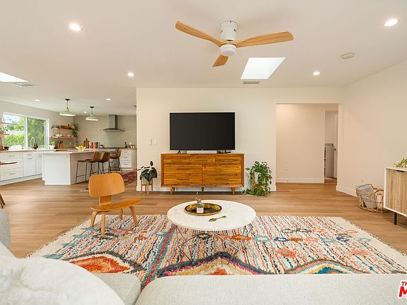 Welcome to this extraordinary modern residence, featuring a fully remodeled ultra-chic 3-bedroom, 3-bathroom home, a spacious new ADU, and a luxurious pool. Nestled on a picturesque, tree-lined street, this turnkey property seamlessly fuses contemporary style with easy, comfortable living. Step inside to discover an airy and open-concept floor plan awash in natural light, flowing in through expansive windows and stunning skylights. The chef's kitchen is truly a culinary dream, equipped with premium Thermador stainless steel appliances, butcher block counters, a grand island with bar seating, and a walk-in pantry designed for ample storage. The spacious primary suite offers a private sanctuary complete with a walk-in closet and ensuite bathroom. Indulge in luxury with a dual sink vanity, a glass-enclosed shower, and a sumptuous soaking tub. Two additional well-appointed bedrooms share a stylish full bath. Venture outside to find an entertainer's paradise. The backyard is a welcoming oasis, showcasing pristine green turf, a Trex deck, and a sparkling new pool with spa, Baja shelf, and convenient outdoor shower. Multiple lounging and recreation areas invite endless enjoyment. Moreover, the property includes a large fully permitted ADU with its own kitchen, laundry, and spacious bathroom, ideal for hosting family and guests or generating rental income. Additional features of this gem include a charming powder room, easy access attic storage, laundry closet, dual-paned windows, solar panels and EV charger. The down-to-the-studs meticulous remodel boasts updates such as a new roof, updated electrical and plumbing, tankless water heaters, and a new central HVAC system with Nest thermostat. Conveniently located near studios, shopping centers, and local eateries, this perfect compound embodies the essence of easy, classic California living at its finest. Welcome home! Main House is 1788 SF (2023 CofO) and ADU is 423 SF (2024 CofO) for a total of 2211 SF.