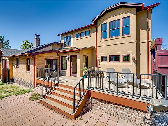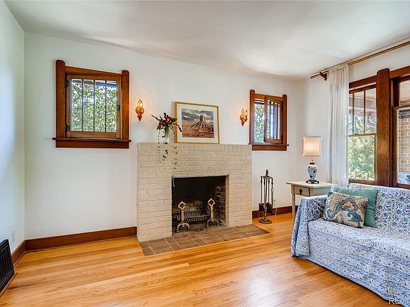 Charming historic 1934 brick and stucco bungalow just blocks from Downtown Littleton with shops, restaurants, light rail, rec center, library, parks and trails within walking distance. Located on a quiet street with no through traffic, this home has been renovated with historical and architectural preservation in mind. The covered front porch with wood ceiling welcomes you to enjoy the mountain views. High ceilings and abundant windows bring natural light inside. Main home has all original refinished hardwood floors, doors, hardware, trim and windows. Formal living room and dining room features wood burning fireplace. 2 bedrooms with walk-in closets and updated bath with walk-in shower on the main floor. Remodeled kitchen and sunny nook with maple cabinets, granite countertops, stainless steel appliances with gas range and island with stainless steel countertop. Large mud room adjacent to back patio. Wide staircase leads to 16x21 room above garage for master suite/office/studio/nanny quarters complete with vintage bath and area for small kitchen with potential for future pop-up over house. All woodwork and windows in the addition were done by custom craftsman to match the original home. Finished garden level basement with egress window for additional bedroom, office/rec room, bath with oversized tub and large laundry room and utility sink. Attached oversized 2-car garage is insulated, accessed through alley with 8' door, two work areas and lots of storage. Spacious IPE deck with fire pit surrounded by beautiful mature landscaping for entertaining and outdoor enjoyment. 2 furnaces, 2 central A/C units and 2 hot water heaters. Immaculate and one-of-a-kind!