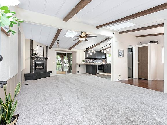 Feel like you're living on vacation year-round in this well-maintained home, located in the beautiful community of Birch Bay Village. As you enter into the main living areas of the house, you will notice the vaulted ceilings with skylights and windows on every wall, allowing for natural light to fill the space. Brand new carpet throughout, this home feels fresh and clean. Primary bedroom overlooks the serene back yard, complete with an ensuite bathroom. The star of the show has to be the outdoor living area with a large covered deck, paved patio, studio, and garden with fruit trees - all backing up to a private field. It really is an outdoor oasis! Community features golf course, private beaches, pool, marina, sport courts & more!