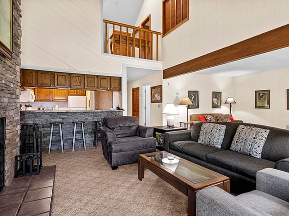 Shanty Creek 3 bedroom condo at Summit Village. This roomy condo features a vaulted ceiling and a cozy wood-burning stacked stone fireplace that opens to a dining room/den. The dining area can easily seat 10 or more. There are plenty of kitchen cabinets, ample workspace, and a kitchen bar that comfortably seats four. Filled with natural light from numerous windows, the space is bright and has direct deck access - perfect for those northern Michigan summer nights. There's a cozy main level bedroom with an en-suite bathroom including walk-in shower and tub. This sizeable room can accomodate a king, 2 queens or even 2-double bunk beds if additional sleeping space is needed. The upper floor has 2 bedrooms and a bathroom. Here you will enjoy world-class golf in the summer while escaping into a winter wonderland in the cold season. Adventure downhill skiing, tubing, snowshoeing, cross-country skiing, snowboarding, fat-tire biking & more—this is perfect for families and thrill-seekers. You'll also enjoy a sandy beach, playground, tennis, basketball, and more on Lake Bellaire in the Summit Property Owners Beach Club. Already particiaptes in active rental program. Sold furnished and rental ready. New natural gas furnace 2024, and a new A/C is currently being installed.