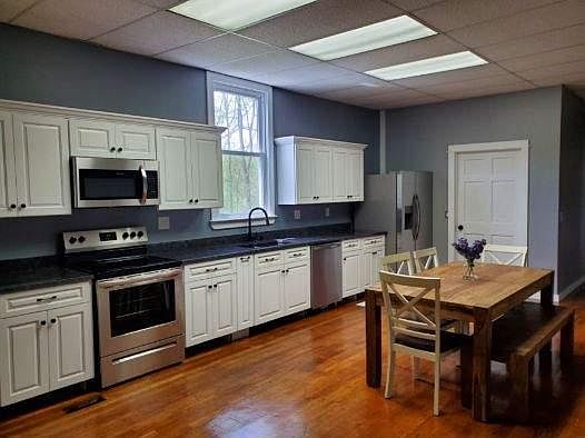 Unique single-family residence in beautiful Hudson Valley. Completely renovated former meeting house - Large living area situated on 1 acre lot. Single-level, Open floor plan - large kitchen (new cabinets and granite counters; new, stainless steel appliances, double-sink, microwave and electric range/oven), master bedroom and large 2nd bedroom, optional 3rd bedroom/pantry/office. Full bath with shower/tub combo, and brand-new, full-size washer and dryer in the laundry room. Massive great-room with 14 foot ceilings. Updated, ultra-efficient mini-split heating and central air-conditioning units, electric hot water heater. Outdoor storage shed available for use. Trash removal and water services are included in monthly rent. Renter is responsible for electric and internet/cable. Residence is unfurnished. Short walk to the Village of Millerton - very close drive to Lakeville, Salisbury and Sharon, Connecticut. Metro-North (Wassaic) is about a 20 minute drive south, and the Harlem Valley Rail Trail is in walking distance. Very private and plenty of outdoor space. Renter pays electric, cable/internet and lawn/snow - water and trash removal are included in the rent.