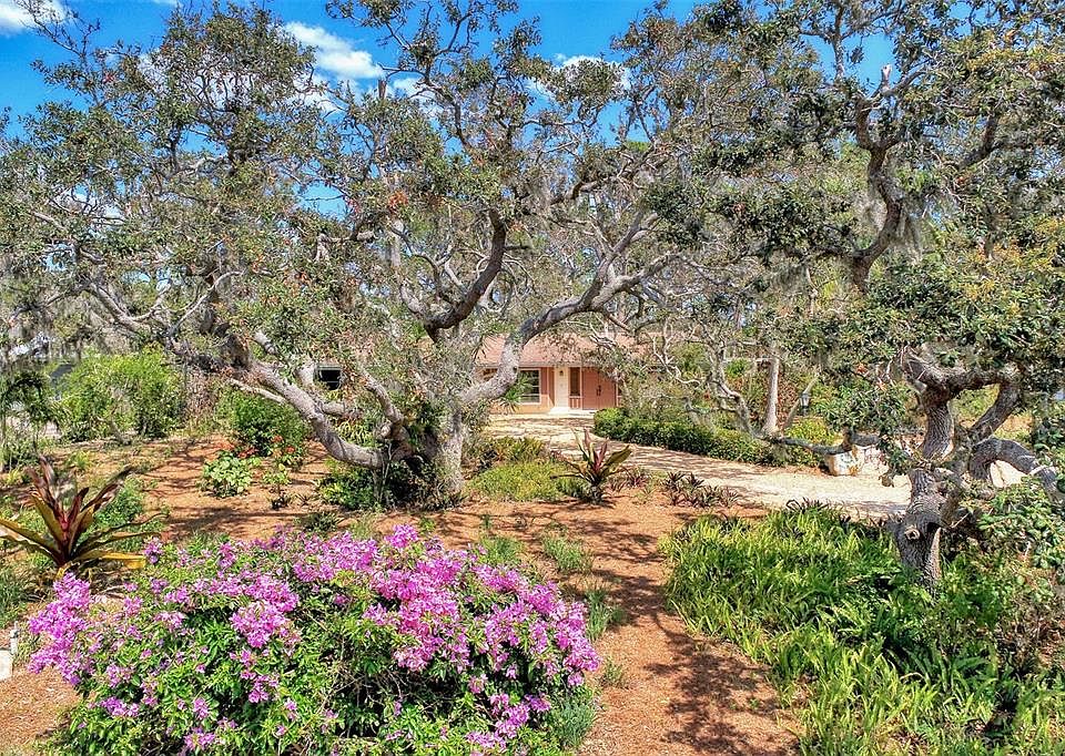 Welcome to your own private oasis just 1.6 miles from the Gulf of Mexico! This 3/4 acre property on a quiet dead-end street boasts a lush, tropical garden that will take your breath away. As you enter the home and gaze through the pocket sliders you'll be greeted by a Southern Live Oak with vast spreading canopy and gnarled, twisting branches as well as a vibrant array of flora and fauna that will transport you to a world of peace and tranquility. The garden is a true masterpiece, featuring a variety of native plants and pollinators, exotic flowers, and colorful shrubs that provide a natural canopy for the entire property. You'll feel like you're in your own botanical garden as you explore the different paths and seating areas that are strategically placed throughout. Inside the home, you'll find a large open living room that seamlessly blends the indoors with the outdoors. Large windows and sliders provide ample natural light and allow you to enjoy the garden views from almost every room. This 3 bedroom / 2 bathroom split-plan home w/two car garage offers plenty of room for guests. The oversized master ensuite features a large walk-in closet and has an adjacent bonus room with picture windows and skylight that would be perfect for an office. There are porcelain tile floors throughout the entire home. No carpet! The outdoor living space is equally impressive, featuring a large lanai that is perfect for entertaining guests or simply relaxing with a good book. Indulge in the simple pleasures of life and relish the breathtaking views of your own personal paradise while savoring a cup of coffee in the morning or unwinding with a cocktail in the evening. This home is move-in ready with most of the big ticket items recently replaced. Updates include: New roof (Spring 2023), A/C (2021), water heater (2021), New septic drain field (2015), septic system pumped (2023), refrigerator (2022), and garbage disposal (2022). Other highlights of this unique property include Englewood city water, private well water for plants, NOT in a flood zone, and steel hurricane shutters. Immerse yourself in the laid-back and captivating Florida lifestyle that this home offers, with its breathtaking natural surroundings, easy access to Manasota Key Beach, and all the excitement and adventure that this vibrant location has to offer! Just a short drive to Wellen Park and the Atlanta Braves Spring Training Ballpark, Historic Downtown Venice, South Brohard Dog Beach, as well as plenty of great restaurants and shopping!