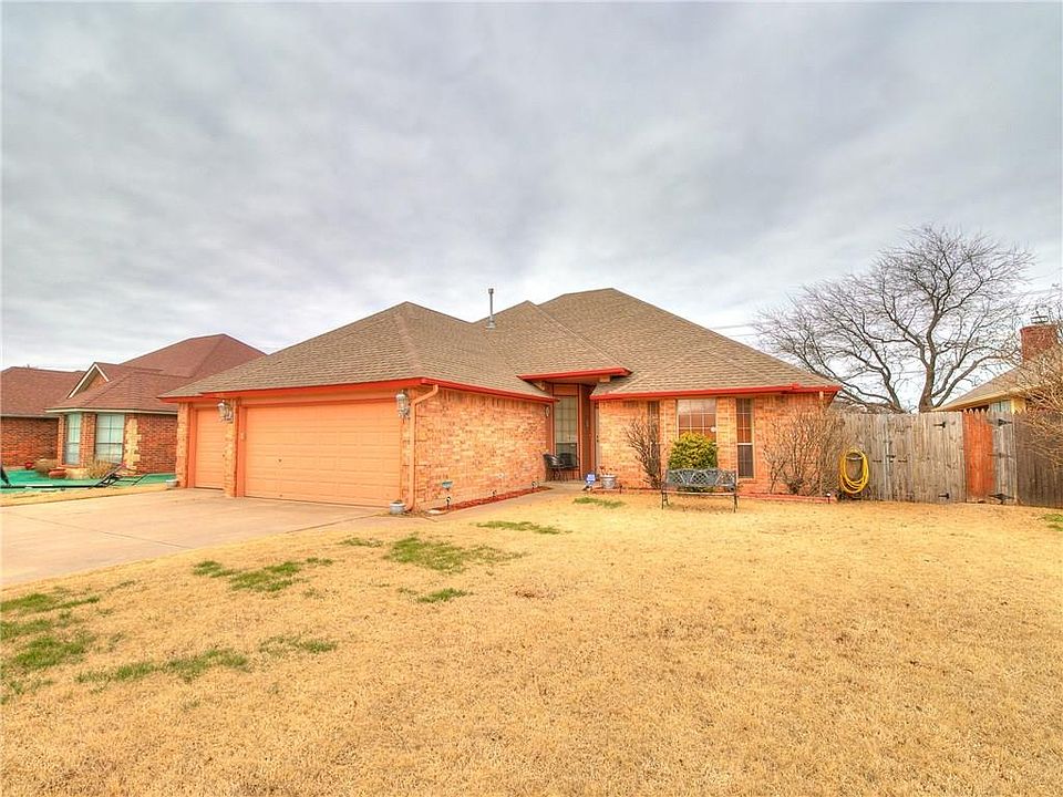 Located in Moore schools, this beautiful home features 3 bedrooms, 2 bathrooms, plus a study that could be an optional 4th bedroom. Tall ceilings greet you upon entry, and the open living space is ideal for entertaining, highlighted by a gorgeous fireplace as a dramatic focal point. The formal dining room provides plenty of space for large family gatherings, and the kitchen features tons of cabinet and counter space, stainless steel gas stove top, spacious eat-in kitchen area, and breakfast bar for additional seating. This tremendous split floor plan has a private master bedroom on the opposite side from the guest bedrooms. In this master you'll find a huge Australian Closet, large en-suite bathroom with jacuzzi tub, as well as a separate shower, and double vanities. 3-car attached garage is exceptional for storage, oversized driveway provides ample parking, and the above ground pool is a blast! Great location less than 10 minutes from Tinker, and 15 minutes from Downtown OKC.