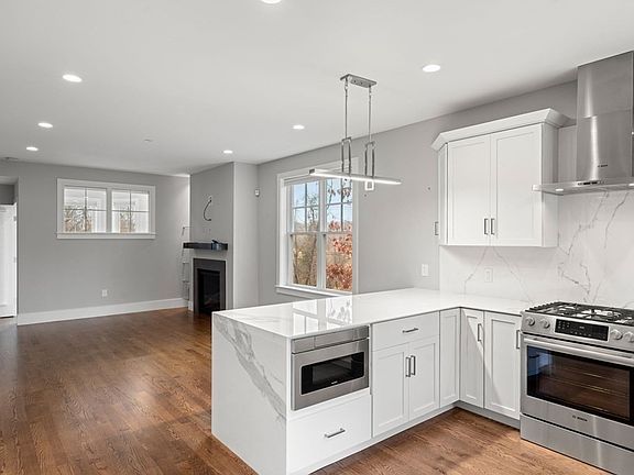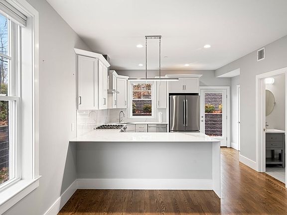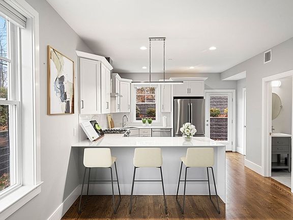 Soak up the sun in this bright end unit townhome that exudes modern elegance! The main living area features an open flexible floor plan, warm wood floors, high ceilings and a gas fireplace. The cook's kitchen is equipped with gas cooking, Bosch appliances, and stylish shaker cabinets, separate pantry storage and access to your private patio. The third bedroom doubles as a home office enhanced with a bay window and storage. The second story will delight boasting a primary ensuite with a spa-like bathroom featuring a glass-enclosed shower and Porcelana tiling. Washer and dryer, an additional bathroom, and a generously sized 2nd bedroom complete the picture. Additional perks include central AC, a heated 2-car garage, and convenient access to downtown Boston, the Longwood Medical area, and the Arnold Arboretum. This townhome seamlessly blends modern living with comfort and convenience.