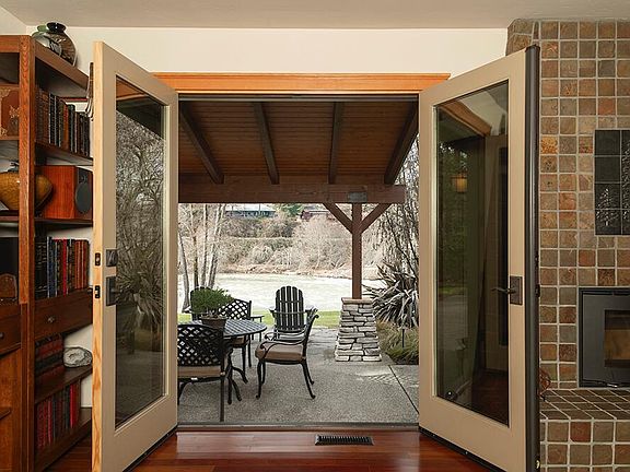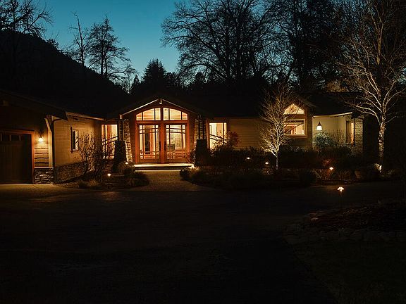 Amazing River Home. This stunning Contemporary Craftsman home offers 1.5 acres of serene riverfront living on the Rogue River. Fully remodeled and updated in 2006, this single-story retreat spans 2,841 sq. ft. and features 3 bedrooms, 2.5 baths, and breathtaking river views. Inside you'll find Brazilian Cherry hardwood floors, Heart of Fir trim, Two cozy fireplaces, and a whole-home speaker system that create a warm, sophisticated ambiance. The custom kitchen boasts maple cabinetry, granite counters, a Viking gas range, wall ovens, a custom tile backsplash, and a center island, perfect for creating memorable meals. In the large primary suite there's a large walk-in closet, Soaker Tub, Large Shower, & French doors out to the patio overlooking the river. Step onto the covered stone patio and take in the beautifully landscaped grounds and the tranquil sound of the riffle. With a newer roof, whole-house generator, and end-of-the-road privacy, this is an exceptional riverfront sanctuary.