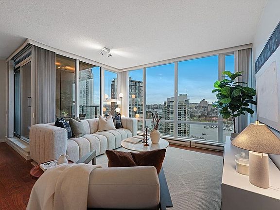 Welcome to the coveted Park West 2 in the heart of Yaletown. This rarely available 1,041 sq. ft. 2 bed/2 bath + flex home offers breathtaking, unobstructed views directly overlooking the ocean, park, False Creek, and city skyline through floor-to-ceiling windows. The open-concept living and dining areas maximize both the views and functionality, while the spacious kitchen features a large island and ample storage. A versatile flex space beside the kitchen provides options for a pantry or home office. TWO side-by-side parking stalls and a well-maintained building with resort-style amenities—indoor pool, hot tub, sauna, gym, squash court, theatre, games/party rooms, and guest suite—complete this offering.