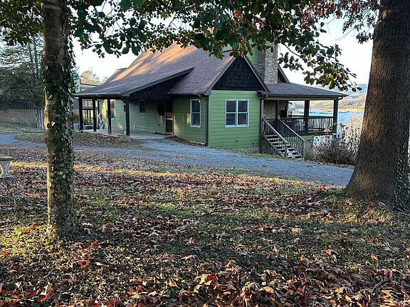 1st TIME LISTED —HISTORIC TATE SPRINGS—GERMAN CREEK—DOCKABLE--LAKEFRONT-BIG VIEW—BOATHOUSE & RAMP—--EXCELLENT FISHING--YEAR-ROUND WATER—PERFECT FOR FULL—TIME RESIDENCE or WEEKEND GETAWAY—--TUBING—-HORSES ALLOWED—KAYAKING—-WATER SPORTS—-CHILLIN' & GRILLIN'---ONE LEVEL LIVING AVAILABLE—-LEVEL ENTRY—-WATCH JULY 4 FIREWORKS FROM YOUR PORCH—-PERFECT FOR ENTERTAINING—--TWO KITCHENS--TWO LAUNDRY-TWO HVAC This special property has had the same ownership since the 1950's.There are VIEWS FROM EVERY WINDOW. This house sits in a quiet cul de sac, on a peninsula, in German Creek Cabin Sites, a neighborhood that is protected by TVA Covenants & Restrictions that limit one home per lot and prohibit overnight rentals. There is little traffic. This mature neighborhood is rich with flora and fauna alike. Green thumb not required, everything grows here. You will see bald eagles soar from your porch. And baby Kits playing in the yard. Thoughtfully designed, all porches offer beautiful year-round views. There are both long range and short range views. One can see the Clinch Mountain Gap and the historic, and locally adored, green bridge that is named after William B. Harrell. Weather Watcher? This property will thrill you! Storm watching from these porches is incredible. There are 1.79 acres that gently slope to your cove where there is already a boathouse and ramp. One hundred and fifty-five feet of shoreline gives you a lot of room. The lot is dockable. All you have to do is put a dock application to TVA to make the dock official. In lake life, boathouse plus ramp plus dock is a trifecta! The house is perfect too. Custom-built with lots of extras and thoughtful touches, this house has covered, level entries, uncrowded walk spaces, ample electric plugs and light switches. The amazing custom, wood ceiling greets one upon entry. The forty-two inch kitchen cabinets are impressive, they fit the scale of the room. 'They also ramp up the storage ability of this small and very functional kitchen. There are plantation blinds in each room. Stylish, upgraded interior doors, the lighted, built-in art cubby, built-in display shelf, stone fireplace to the ceiling and the hardwood floors, to name a few more special touches. Comfortable, one- level-living is possible. The Main level has the great room, kitchen, dining room, primary bedroom en suite, guest bedroom, hall bath, laundry, fantastic wrap around porch with access to yard, dining room and great room, and covered patio/carport. There is an entire house on the main level. Additionally, there is an ensuite bedroom upstairs waiting for your finishing touches. This room has so many possibilities. Imagine your office with this mesmerizing view. The room could also be a guest suite, a dark room, game room, studio, library, plant room, get away...make this room what you want, it can literally be anything you desire. Now, about downstairs; Downstairs can provide additional daily living space,or function as an additional dwelling. Except for renting it overnight, you use this space as you see fit. In total, downstairs, another kitchen, drive-in garage, front room, back room, walk-in closet, bathroom, laundry, dedicated HVAC and wrap-around porches. All facing the glorious Cherokee Lake. There is a one car garage on the property and enough space to build another garage if needed. This home currently has a two bedroom septic system. Seller has spoken to an expert. Expanding the septic system to be a 4 bed 4 bath home is a viable option. Sold AS-IS, WHERE-IS. Motivated Seller!!! Drone Photos are used in This Listing All information taken from The Seller and CRS Tax Records thus deemed reliable. Verifying all information contained herein is The Buyer/The Buyer's Agent's Responsibility.