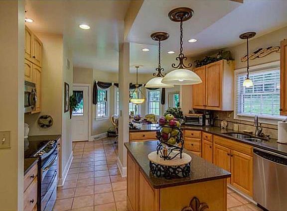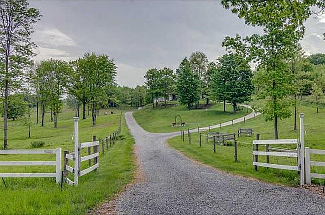 A luxurious equestrian ranch w/ amish-built 5 stall stable with wash stand & tack room, riding ring, 3 electric fenced paddocks that surround the house, 5 acres of riding trails onsite. 10.8 acres connected to other trails via right of ways, and accessible to Brush Creek Park. Home main level has open living rm with fpl, updated granite eat-in kitchen, stainless appliances and hardwood floors, and 3 bedrooms, 2 baths. Lower level has bedrm, spa bath, 50' game/family room, theater rm,office/den w/wetbar