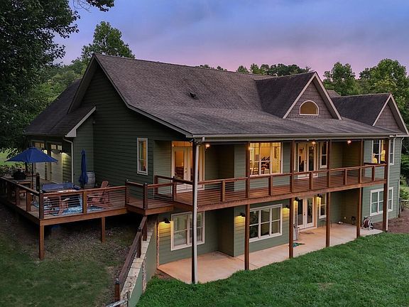Paradise Found! Charming Lakefront Escape on amazing 4.28 gentle & usable acres (rare & hard to find). Priced below Appraisal & per the UCEHD, there is room for an additional approved 3 bedroom lake house!! Discover the perfect blend of tranquility & adventure with this incredible lake home built by one of the area's top builders (Kevin Green). Nestled in a picturesque setting, this property offers breathtaking lake & mountain views & a private dock for seamless access to boating, fishing & swimming & fenced in yard. This luxurious 4br/4ba Craftsman style home has a 2-car attached garage, all paved access & additional covered parking. The updated interior has a spacious floor plan with lots of natural light. Enjoy the newly updated & gorgeous kitchen with s.s. appliances, new quartz c-tops/backsplash & fixtures & the newly painted interior. The cozy living area has a stone fireplace with gas logs, wood beams & built in bookshelves. Each floor has its own zone with dual fuel c/h/a. There is a large private office/bonus room above the garage. You will love the serene Master Suite with lake & mtn. views & tray ceiling. Primary spa-style master bathroom with decorative tiled shower, double vanities with new quartz c-tops, stylish updated mirrors & high-end Hansgrohe bathroom fixtures featuring the Axor line. Large finished basement perfect for entertaining with stunning bar/second kitchen & wine cooler. Home boasts expansive outdoor porches/decks with a fire-box centerpiece & green egg too....perfect place to gather! Exterior includes a large outbuilding for the lake toys, lush green grass & landscaping, & a must see huge stone fire pit area by the lake to soak in those amazing sunsets & s'mores! Truly a serene atmosphere for ultimate relaxation, don't miss out on your chance to own a slice of Paradise!!!