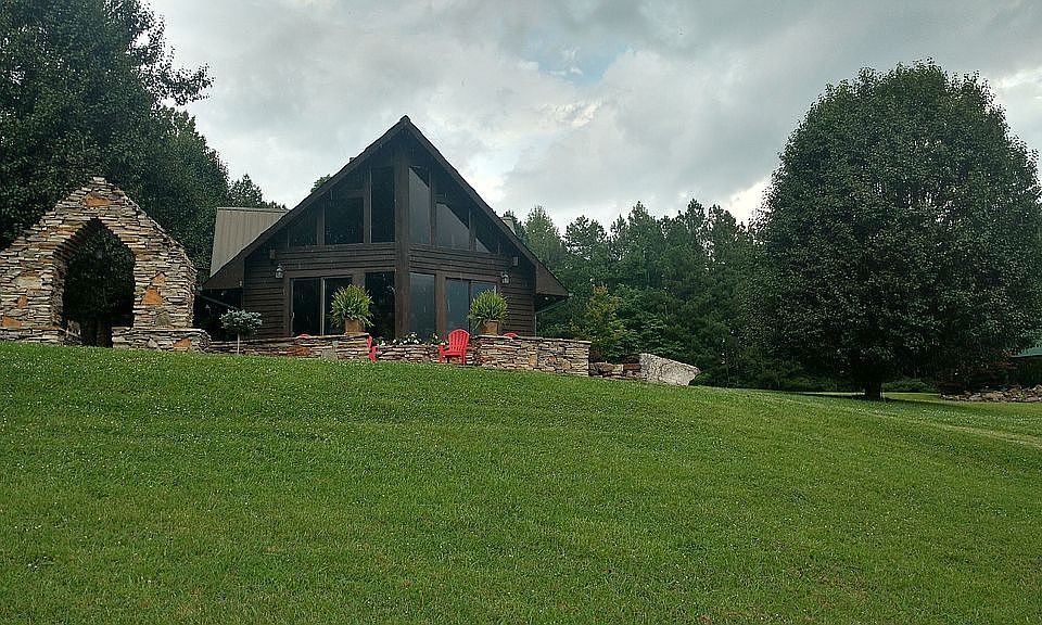This charming chalet is nestled in the foothills of the Cumberland Plateau with gorgeous views all around. As you travel up the half-mile long driveway, a paradise of privacy awaits you! There are numerous ways to experience the peacefulness. You can enjoy your morning cup of coffee from the upstairs balcony overlooking Cranmore Cove as the deer play and as the fog rolls in over the trees. Relax on the deck after a hard day's work or sit on the porch and listen to the rain and wind chimes. Lots of mountain stone artwork entreats the eye including a magnificent arch, landscape bedding, steps, birdbaths and more. The pavilion is a wonderful place to entertain friends and family. Its great for grilling out in the summer or for bonfires at the fire pit in the fall. Speaking of fall... the array of colors is absolutely breathtaking! Pictures just do not do it justice! With no other houses in view, this property is truly unique and full of character. Multiple windows in the great room allow you to experience the view from inside as well. Cathedral ceilings provide a very open and roomy space as the rock fireplace ascends To the top. The great rm includes a 21 light chandelier. The kitchen includes granite countertops and new appliances, along with a wood backsplash that compliments the vinyl plank floors. Two carpeted bedrooms are found at the end of the hall on the main floor. The main bathroom consists of tile flooring, well pump faucet, beautiful white vessel sink, a wood accent wall and granite countertops. Upstairs you will find the master bedroom as you enter through the sliding barn doors. The upstairs bathroom also has tile flooring and granite countertops, along with a well pump faucet and a vessel sink made of rock. The loft offers a nice place to unwind or you can make you way out onto the balcony to enjoy the fresh air. Lastly, there is an underground storm shelter, wood shed, dog lot and lots of space for your garden in the backyard. Conviently located only 30 minutes from Chattanooga and 5 minutes from the Dayton Walmart, this property with 16 acres is a one-of-a-kind! Historic Dayton Tn is a wonderful small town with great schools and a great community! This rare find offers magnificent stone work and sculpture! Completely SECLUDED, incredible outdoor spaces, with detached GARAGE, entertainment pavilion, wood shed, storm shelter and a VIEW that takes your breath. Perfect get away or forever home place! Needs a little tlc but still is a beautiful home .