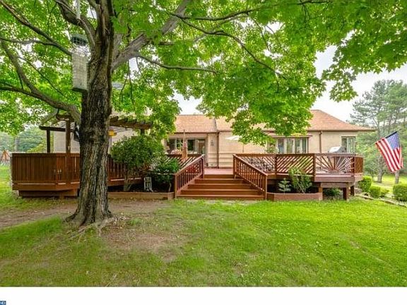 This is a charming, one of a kind, unique home with lots of character set back in a woods-like atmosphere shaded with mature trees for privacy. A covered porch and fish pond greet you before you walk into this incredible home. The interior of this property boasts many desirable features including a skylight in the foyer with hardwood floors. This unique home has a master bedroom on the main floor, adjoined with a sitting room where you can cozy up with a book by the fireplace. There are four more wall to wall carpeted bedrooms, including a freshly painted and carpeted one in the beautiful in-law suite, and a laundry chute on each floor. Off the foyer you will be amazed with the great room with the recessed lighting, ceiling fan and 12 foot high wood burning marble fireplace. The warmth from this can be enjoyed and seen in the living room, dining room, and eat-in kitchen. The rooms are filled with windows, windows, windows allowing the sun to flood in with warm sunshine as you look through and enjoy the park-like scenery. The house is set back off the road for privacy. When you walk through the french doors into the sitting room (den/office) you step through the sliding doors to a welcoming large deck, pergola and a six-person hot tub. You will be ready for entertaining all year long! But there is more...A rare opportunity knocks when you enter the beautiful, spacious in-law suite. Though connected to the house it has a private entrance and patio. This in-law suite offers a very large kitchen with a dishwasher, stove and new garbage disposal. The living room offers yet another fireplace and plenty of storage, and a brand new bathroom. A perfect place for Mom & Dad, a nanny or grown-up generation who you have welcomed back. Very quiet and private for all. Both the main house and in-law suite offer spacious open floor plans. They are both protected with a security system. There is a two car garage and 12+ car parking. This unique home is set in the much sought after Blue Ribbon Council Rock school system. The public elementary school is in walking distance and parochial school is within a mile distance. Low taxes and a family friendly community. If this home is "perfect for your family's future" please come see it with your own eyes. Please note: Square footage is larger than County records.