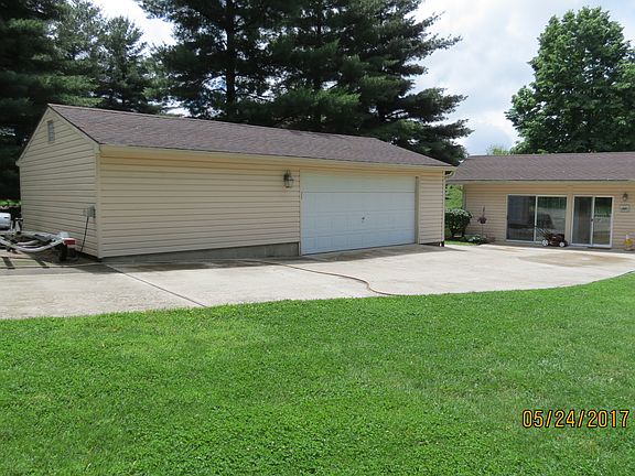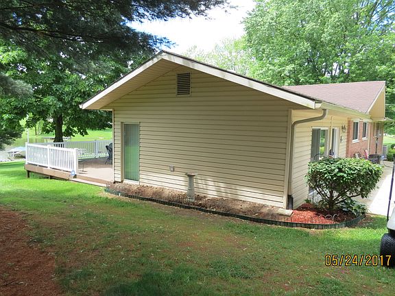 This is a ranch home on over 3/4 of an acre, 2 decks, 2 boat docks, cement drive with extra pull off for camper or RV with 30 amp service and front porch. It's on a beautiful water front lot with a great view of the lake. The back of the lot has about 180 feet of lake frontage. Plenty of trees on each side which belong to the neighbors. Large unattached garage, 756 sq. ft. and the house is approx. 2500 sq. ft. Family room was added in 2013 and the whole house was renovated in 2009.