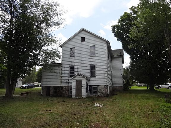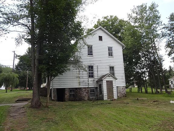 Handyman special with Village Zoning. Bring back he charm of this once beautiful farmhouse with wrap around porch and several small outbuildings. Backs up to a stream! North Pocono Schools.