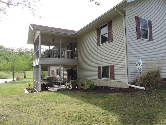 You will fall in love with this home which sits on 4.7 acres. Offering striking views, this lovely rural property features an open concept floor plan with double screened in porch to enjoy views of the pond and nature. You will see plenty of wildlife, hear birds chirping and fish jumping. The split bedroom floor plan provides additional privacy and features the master bedroom with en suite and walk in closet. Two additional nice sized bedrooms are on the main floor with large closets. Enter the first floor laundry with a mud room from the oversized 2 car garage. The lower level features a large, open concept family room with a wet bar and walk out to the pond. Option of fourth bedroom on lower level. There is plenty of room for both indoor and outdoor entertaining! The property includes an additional 12' x 20' shed, an additional 19' x 24' heated and cooled lower level garage and so much more! Close to Interstate 70 and approximately 40 minutes from downtown St. Louis. Come see for yourself!