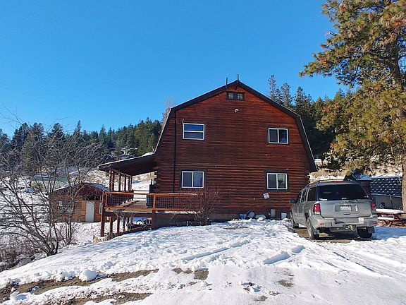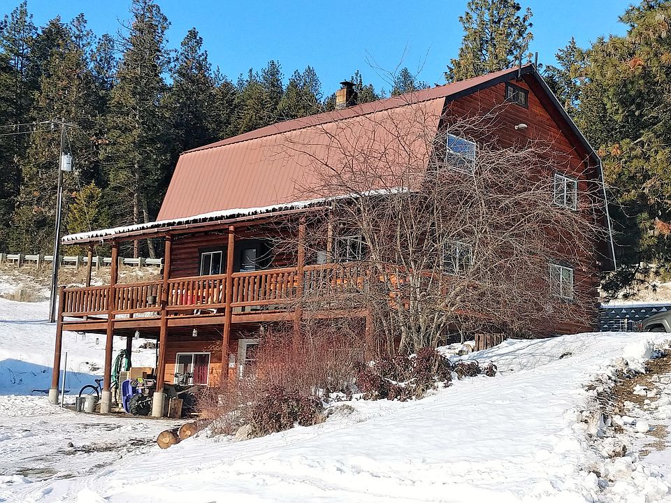 Beautiful 1990 Webley log home on 2 + acres recently updated with awesome views.. 3 bedrooms and 3 baths . Main floor has 1 bedroom and bathroom Newer vinyl windows and finished basement. Lots of garden space and room for your animals. There is a separate fenced yard off the kitchen with a playhouse. Out building has a separate room and fenced yard attached. Shared well ($25.00 a month ) and a separate drilled well for irrigation. This is a warm and comfortable home that's minutes from town.
