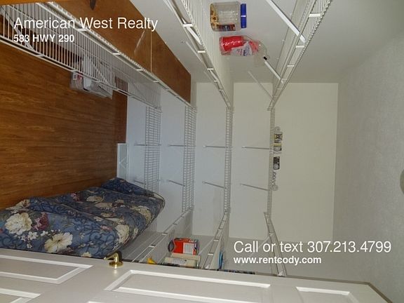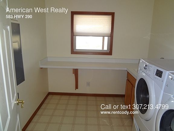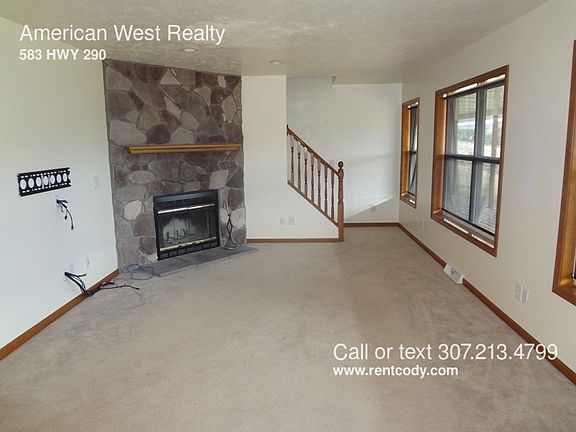 SCHEDULE A SHOWING ONLINE AT: showmojo.com/lh/699c091056 Monthly rental only; house is listed for sale. Beautiful, spacious home outside of Meeteetse on 7 acres with stunning views and direct access to the Wood river. Main floor has two bedrooms, two full bathrooms, laundry, large kitchen, walk-in pantry, and living room with fireplace. Upstairs is two more large bedrooms, two bathrooms, and an office. Attached 2-car garage with stairs and storage in the upper level. Decks on three sides of the home with plenty of space for patio furniture on each. The shop is not included. A pet may be negotiable. Contact American West Realty for more information or to apply. Ceiling Fan Deck / Porch Fencing Partially Fenced Garage Heat Fireplace Or Wood Stove Heat Forced Air Heat Gas Fireplace Kitchen Dishwasher Kitchen Island Kitchen Microwave Kitchen Pantry Kitchen Refrigerator Kitchen Stove / Oven Septic Sprinklers Manual Utility Rocky Mountain Power Views Washer/Dryer In Unit