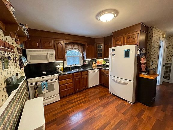PRICE REDFUCED! Welcome home to this move in ready Cape-offering kitchen with cherry cabinets and granite counters-dining room with built in hutch and hardwood floors-cozy living room with hardwood floors-1st floor master - updated bath with pedestal sink and new tub enclosure-hardwood stairs leads to two bedrooms-enjoy outside living with a screened in gazebo-waterfall -smoker for your barbecues-shed for storage- fenced in yard . Quick closing possible.