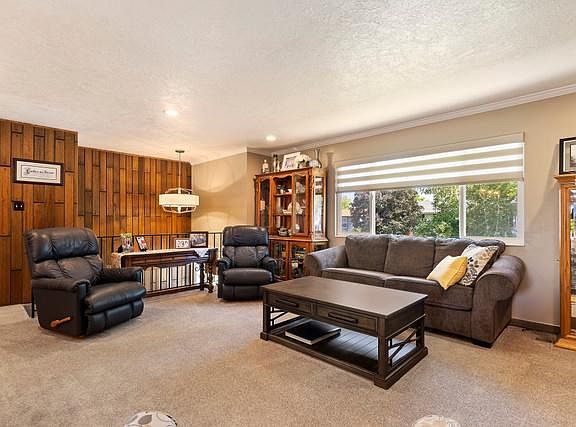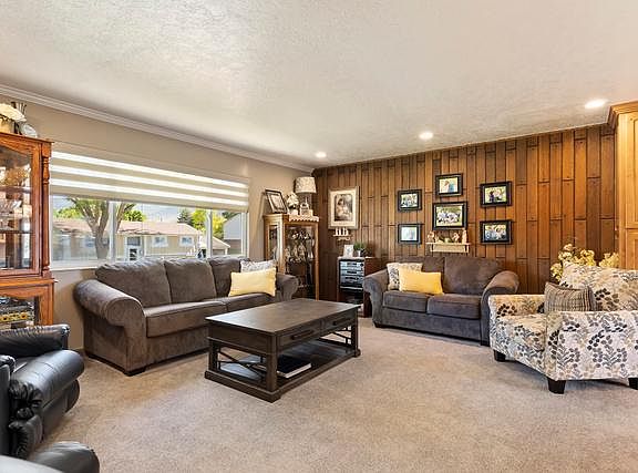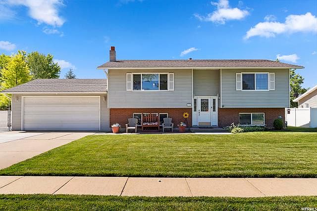 Improved Price! Mint Condition Updated Home in W Bountiful! This desirable home features NEW: AC and Furnace, Windows, and LVP flooring! Handsome exterior with manicured landscaping, welcoming front door with side lights, main level has generous family room with mahogany wood wall treatment, large window with remote controlled custom shade, open floor plan, kitchen with knotty alder cabinets / quartz counters / custom designed center island with pendant lighting / easy maintenance LVP flooring / split oven with smooth top range / Bosch dishwasher / GE Profile refrigerator (included!), wainscoting in the dining area, 2 large bedrooms and 1 full bath complete this level. Finished walk-out basement with spacious family and wood burning stove, additional 2 bedrooms and 1 full bath w/dual sinks and wood-look LVP flooring. Backyard with freshly painted covered deck, patio with retractable shade awning, vegetable garden and fruit trees: 2 peach / 1 apple / 1 pear, home backs to church. Large RV parking. Newer water heater, newer carpet on main level. Schedule via Showing Time.