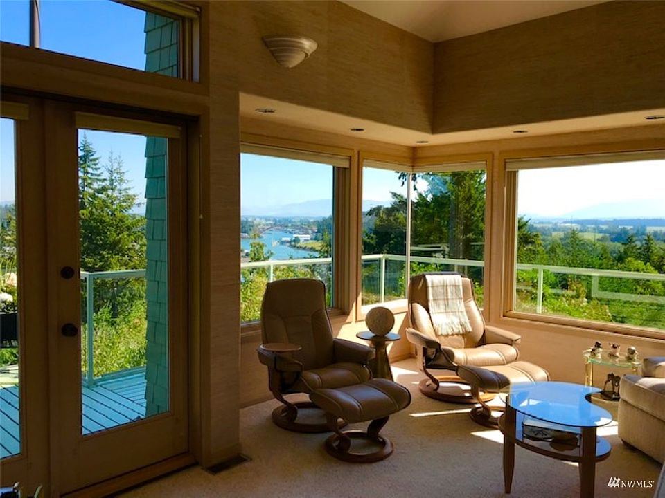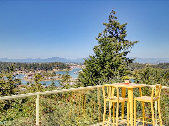 Breathtaking Panoramic Marina, Channel, Rainbow Bridge, Mt Baker, & tulip field views! Absolutely stunning NW Contemporary custom home with exceptional design. Main level living (with step down living room) plus a private lower level suite with separate entrance. Enjoy privacy and seclusion with sunrises over Mt Baker & eagles soaring above. Entertain in the expansive open floor plan great room with high vaulted ceiling ~ all rooms have view & access to deck. Large garage with attached shop & greenhouse & just 6 steps down to main level living. Shelter Bay amenities include club house, private beach, 9 hole 3 par golf, tennis, yacht club, & moorage possible. Just over the Rainbow Bridge to the picturesque waterfront town of La Conner.