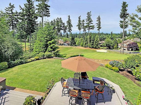 Exceptional. Updated. Views. Enjoy the professionally re-designed spaces of this like-new home privately sited above the 17th green. Bask in the sun on a large deck with magnificent views of the Olympics. Entertain with ease in the thoughtfully updated spaces & polished grandeur. Level lot & meticulously maintained landscaping. You must see and experience this sharply updated home. Relax in cool comfort of a newer heat pump. 4 bd, 2 ½ ba, +bonus rm. New roof '14,