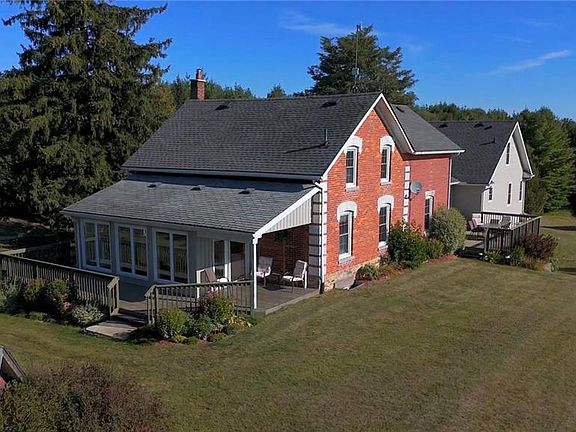 The perfect mixture, 65 acres of sandy well drained, rolling farmland, a hardwood bush, a pine forest, a pond and a large home, suitable for multi-generational living if desired, all tucked perfectly into this 86 acre country landscape. There are 2 large outbuildings, one very well maintained post and beam structure with hydro and a newer detached shop(8'4"x12' sliding door), wired for all your tools. The home, combines a Century Red Brick Farmhouse, lovingly cared for, with an addition custom built a little over 15 years ago to mimic the old world charm with large wood baseboards, trim and solid wood doors. A Wood Burning Stove, Heated Floors, a Geo-Thermal forced air system and Boiler baseboard system (with rough-in for outdoor wood burning furnace). There are many economical options to keep this large home warm and inviting, and also keep the power on with the automatic, whole home Generac Generator installed in 2023. There are 3 full bathrooms, 1 powder room and another just waiting for fixtures. On the older West Wing, there are 4 possible bedrooms and on the newer East Wing, there is a main level bedroom with ensuite and a large bedroom on the upper level that could be divided (with rough-in bath). The attached 2 car garage is oversized to fit a pick-up truck and underneath the garage is a clean and dry area that is currently used as the 'cantina' for salami and wine making. The 65 acres of farmland is currently leased. This home is one-of-a-kind, a must-see with so many options, great sandy loam soil for crops and livestock, or just a country residential paradise.