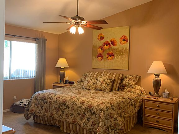 55+ Gated Community This beautiful 2 Master Suits, 2 Full bathroom with Open Concept floor plan, Stainless steel appliances, with fresh coat of paint and all new blinds. Living room and Dining room new ceiling fans, new 20' tile throughout and Carpet in Master bedroom. master bathroom features granite counters, and new toilets! New hot water heater. water softener. 2 Car Garage 19X22 lots of storage with built in cabinets, new garage door motor! The Large backyard has nice covered patio to enjoy AZ beautiful weather! HOA Covers both backyard and front yard care!