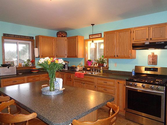 Here is your chance to own a home in Country with 3.83 acres,3 bedrooms,1 full bath upstairs,1 full bath on the main level,The possibilities are endless.Detached 2 car garage that is heated with a wood stove There is a cabin and a greenhouse that are also heated with wood stoves. The cabin can be used as additional living space or a guest house. Mature pear, apple, cherry and peach trees along with and a grape arbor and a large garden area. There is an open barn and 2 other outbuilding. The furnace , AC and duct work are less than 2 years old. An addition to the home was added 7 years ago which consisted of a new kitchen and dinning area and updated windows. If your looking for a home with plenty of space and a beautiful country setting here it is.